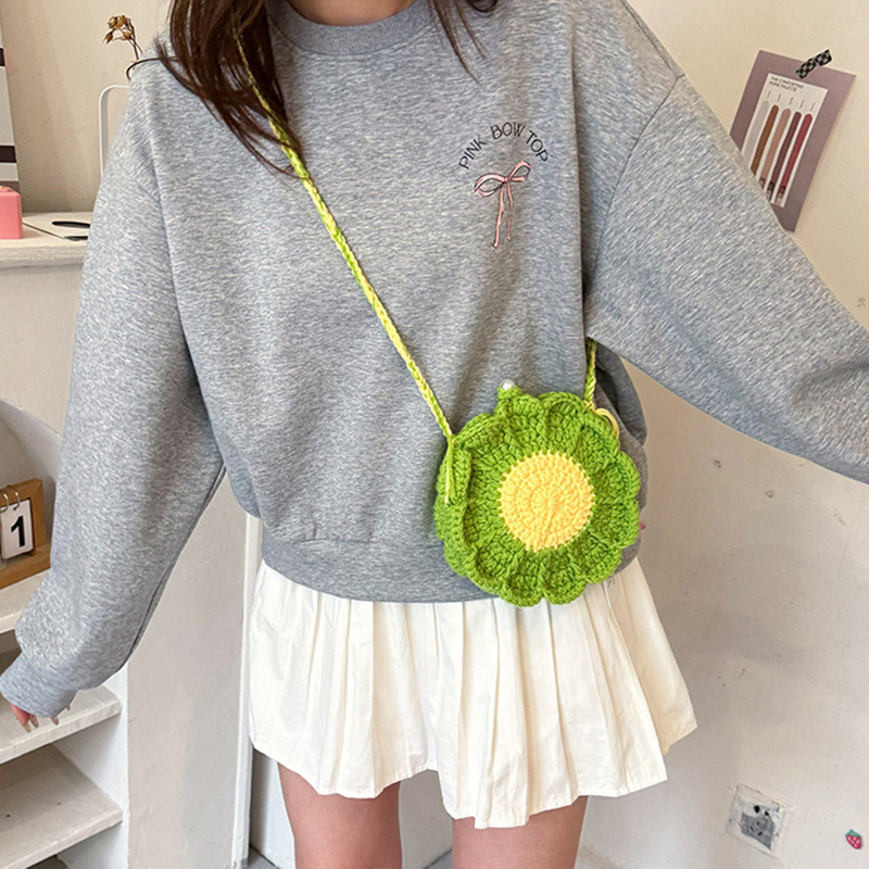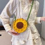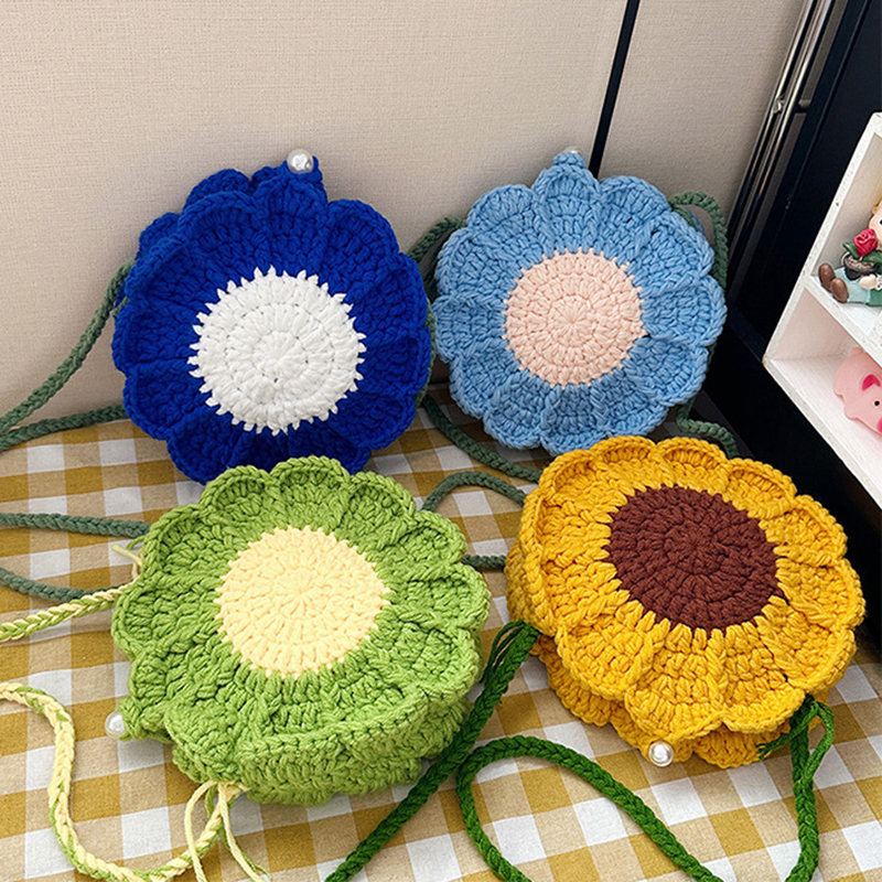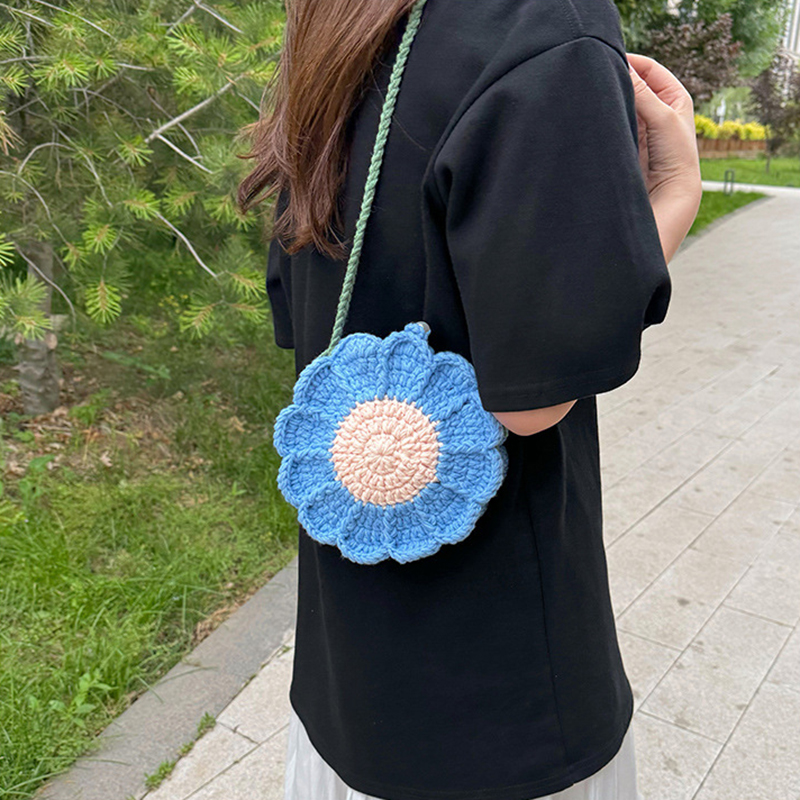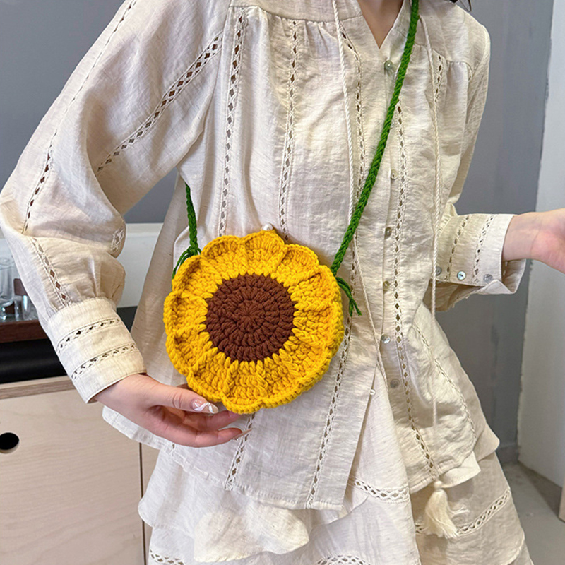 Handmaking Crochet Sunflower Shoulder Bag Woven Bag Cute Fashion Handmade Woven Women Shoulder Bag