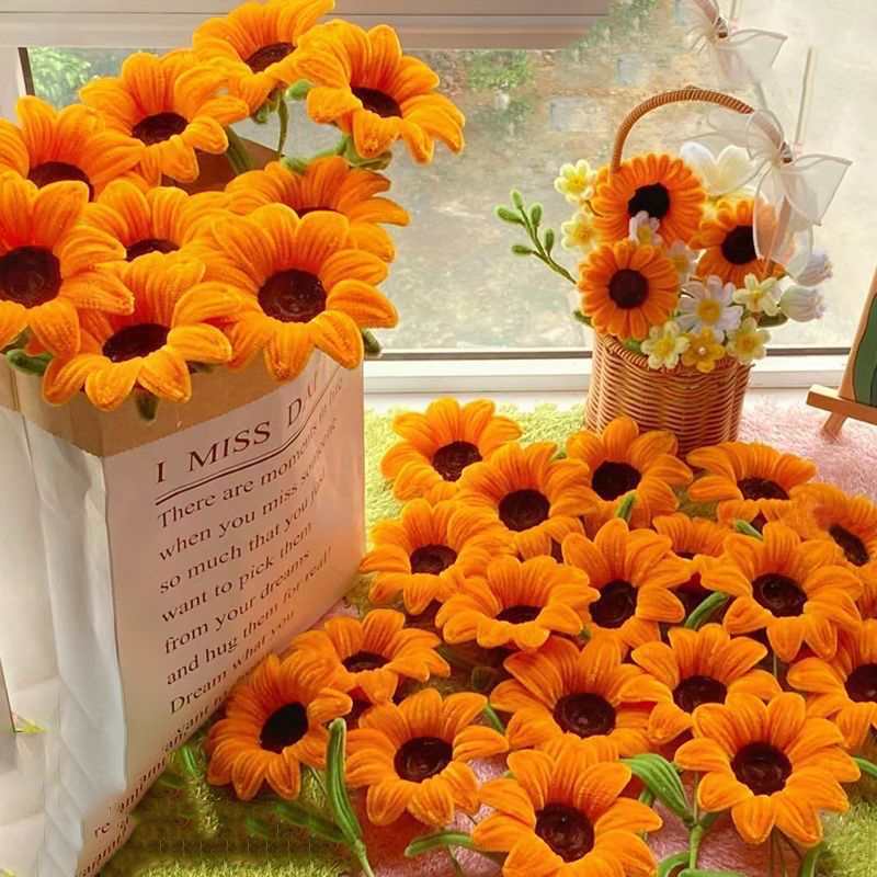 Non-finished DIY Sunflower Bouquet Pipes Cleaners Crafts Kit Handmade gift